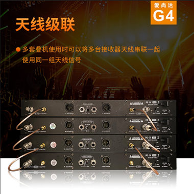 爱尚达G4是一款高品质、稳定可靠、功能丰富、性能卓越的无线麦克风,适用于复杂的舞台演出环境和超远接收 本系统采用了最新的U段高保真音频无线传输技术确保了麦克风的音频清晰度和还原度 真分集接收最大限度保证了远距离传输无死点,最远接收距离达到300米,稳定可靠 超强的抗干扰能力,支持同房间叠机20台同时使用不干扰