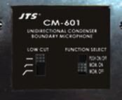 ② CM-601备有LED电源指示灯、低频衰减三阶段调整开关、电容式心型指向性音头