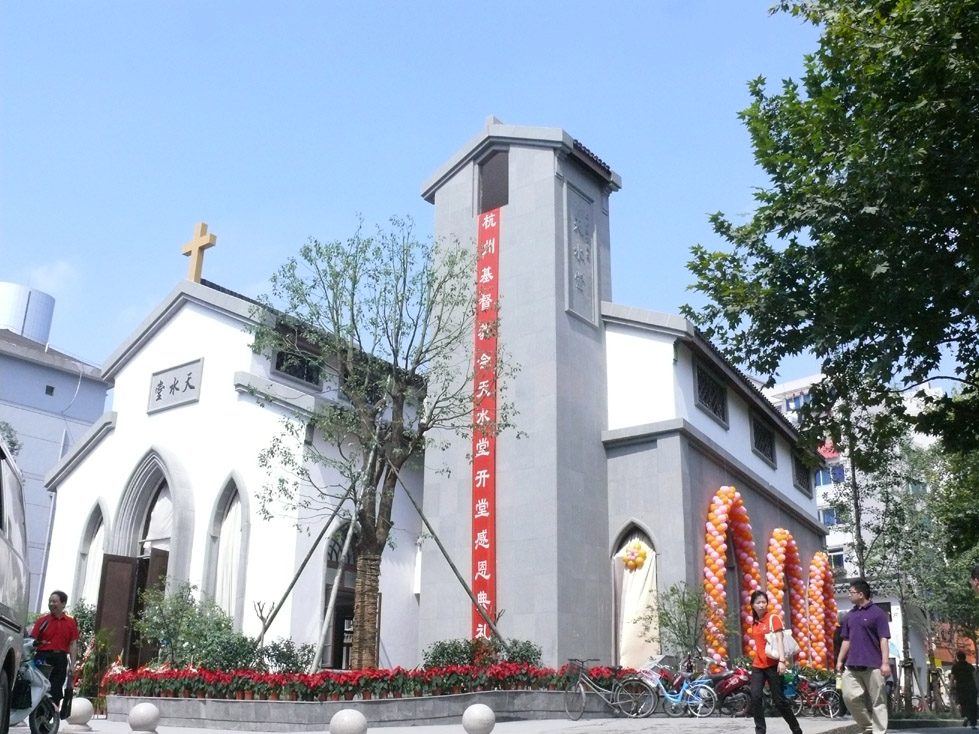 杭州市基督教两会于2009年9月25日上午在天水堂隆重举行杭州基督教会天水堂修缮工程落成感恩礼拜和落成典礼,全市基督徒近1000人前来参加。